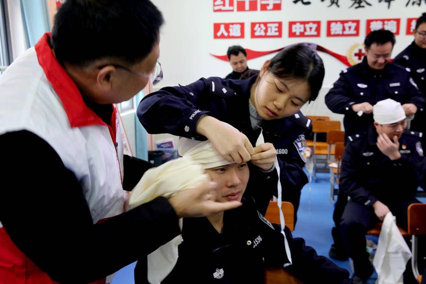 民警进行包扎练* 自2024年以来,远安县公安局认真落实公安机关政治工作行动计划,先后四次组织开展应急救护技能培训,为基层所队配置AED(自动体外除颤器)设备,实现了急救设备和人员在基层所队全覆盖,为有需要的群众提供救护。 按照《大练兵活动计划》,远安县公安局2025年春季警事技能练兵将以基本体能、武器使用和理论知识为主要内容,突出以体能促全能,以治警提质效,全面提升民警的能力素质。