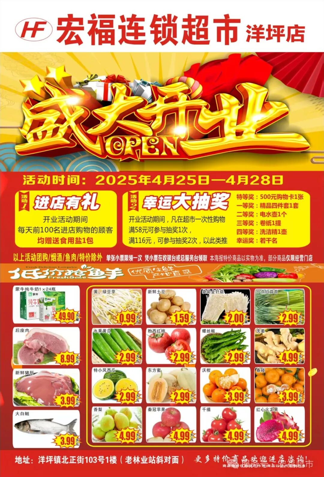 [广告] 宏福超市洋坪店4月25日盛大开业! |