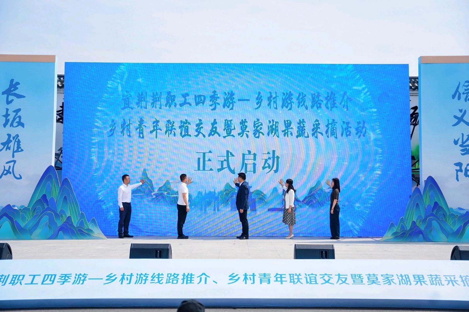 春风又绿沮漳岸,文旅为媒促振兴。4月25日,“宜荆荆职工四季游——乡村游线路推介乡村青年联谊交友暨莫家湖果蔬采摘活动”在当阳市河溶镇举行。