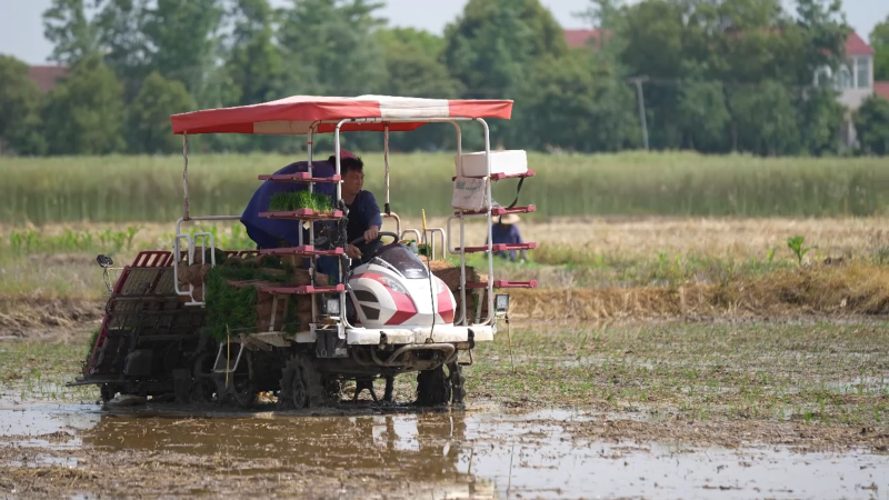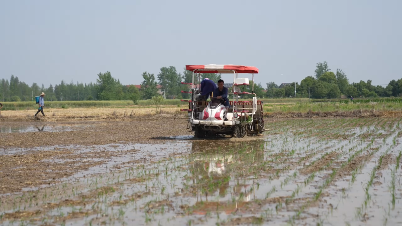 在河溶镇前进村的水田里,农机手熟练操作机械,插秧机匀速前进,精准地将秧苗插入水田中,一排排秧苗间距均匀,深浅一致。相较于传统的人工插秧,机械插秧让效率大幅提升。