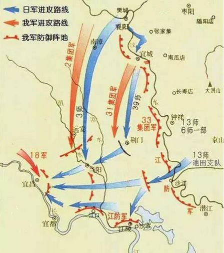 从该路线图可以看出,日军分三路向宜昌发起进攻。日军第3师团从南漳肖堰、东巩南下,直达远安,进攻当阳,继而进军宜昌。