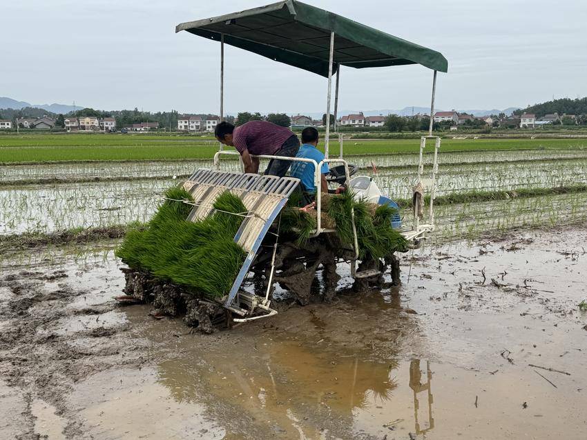湖北日报客户端讯(通讯员 施家辉)当下正值水稻插秧的黄金期。连日来,旧县镇各地抢抓农时,上演出一场机械化插秧助力秋收的好“丰”景。 在瓦仓谷香育秧基地内,一盘盘秧苗整齐排列在育秧盘上,嫩绿的秧苗在微风中轻轻摇曳,工人们正忙着将秧盘装车,准备运往周边农田。“今年引进了6台进口插秧机,不仅效率比人工提高了2-3倍,还能精准控制株距和深度。”育秧基地的负责人余家培介绍道。 在观西村水田中,搭载北斗导航系统的高速插秧机轰鸣前行,嫩绿的秧苗如精准的针脚般整齐划一地植入田间,为大地织就一片新绿。“原来一个人插秧,一天顶多能插8分多地,现在机械插秧一天可以插30亩左右,比人工效率要高得多,劳动强度也大幅降低。”种粮大户陈云感慨道。