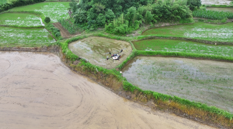 近年来,当地引进无人机直播作业,不仅不受地势的限制,还可以将种子直接均匀地撒到土壤中去,并且实现精量控制。