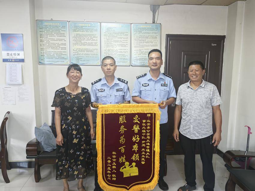 据悉,杜女士当时并没有太在意这件事,拿到赔偿金后就离开了。后来,在外地工作的子女得知此事后,深受感动,认为远安交警真正做到了主持正义、热情服务,特意嘱咐母亲一定要给远安交警送上一面锦旗,于是便有了开头的那一幕。