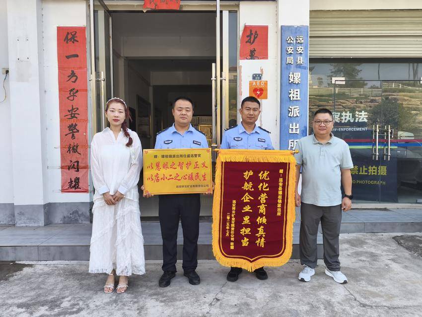 湖北日报客户端讯(通讯员杨芳芳)7月15日,祥云矿业企管部李先生专程来到远安县公安局嫘祖派出所,将一面印有“优化营商倾真情,护航企业显担当”的锦旗送到办案民警手中,对警方快速破案、全力挽回企业损失表达诚挚谢意。