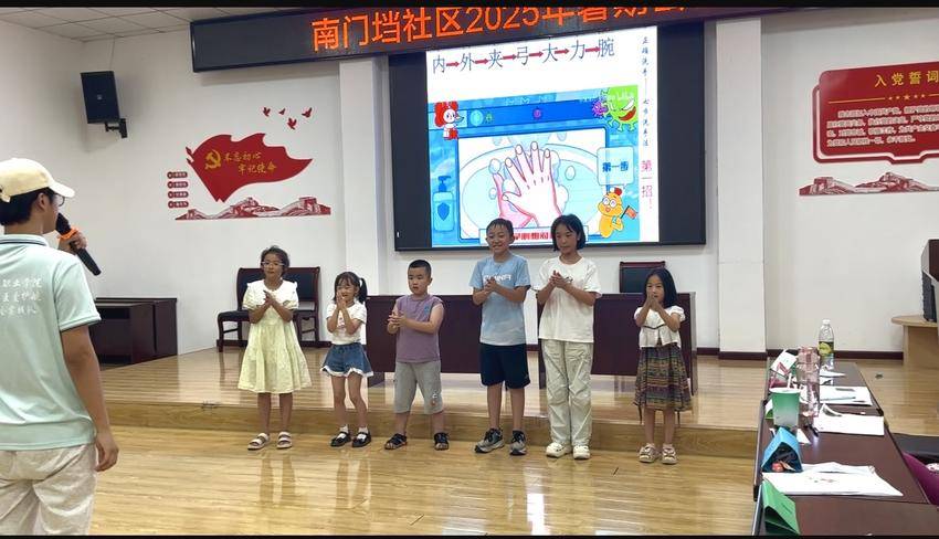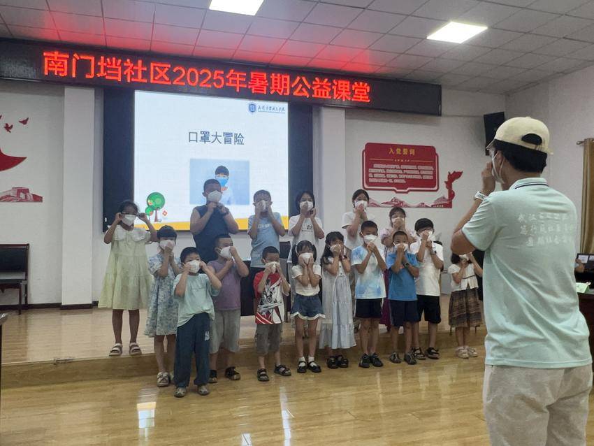 湖北日报客户端讯(通讯员 叶翔 李晨)近日,武汉商贸职业学院“笃行筑虹·医爱护航”青帆社会实践队在当阳市团委的大力支持下,深入当阳市玉阳街道南门垱社区,结合专业特色开展了一系列爱心托管班相关课程,既丰富了孩子们的暑期生活,还为社区青少年带来不一样的知识新体验。 随着季节变化,呼吸道疾病的预防尤为重要。青帆实践队发挥专业优势,带来了一堂实用的医护类课程,重点讲解呼吸道疾病的预防,包括正确洗手和口罩佩戴方法。