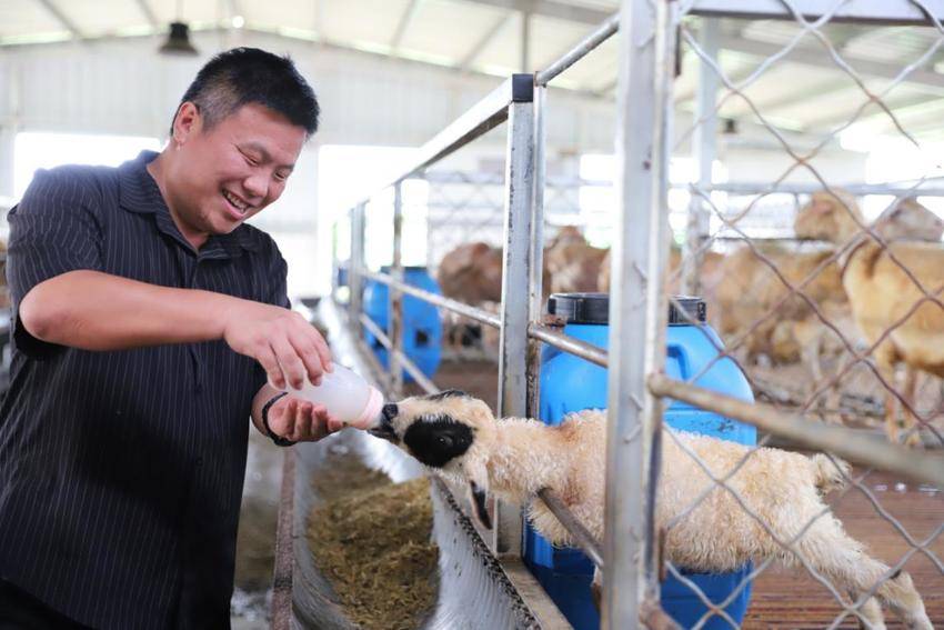 盛夏时节,湖北农发木闸湖农牧产业有限公司负责人、当阳市政协委员张林林在自己的羊舍工作,工人们有条不紊得在各个工作区域忙碌,喂饲料、剪羊毛、清理羊舍、观察羊羔身体状况。张林林顺手拿起一瓶奶给小羊羔喂奶,脸上满是自豪。