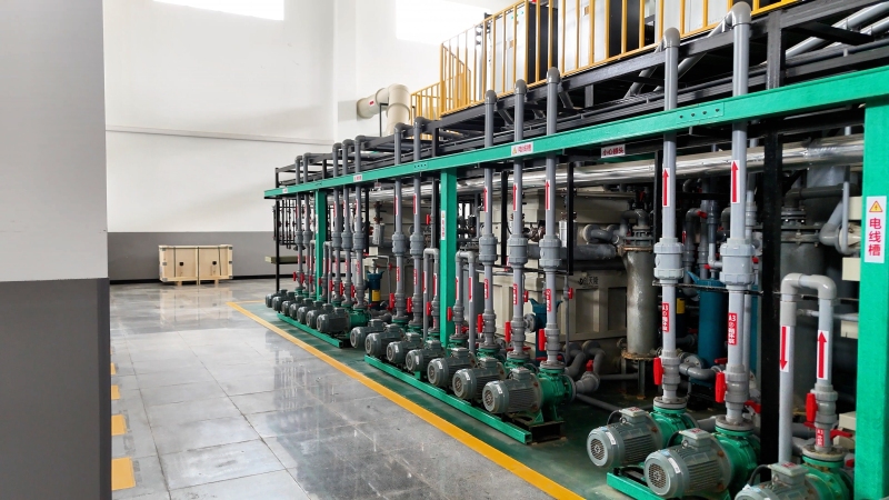 在腐蚀箔生产车间,技术人员正在对新设备喷淋管进行疏通,检查设备运行状况。该生产线利用铝箔高压腐蚀—纳米高介联动技术,大大提高产品电化学性能。“新投产的两条生产线孔洞结构更大,更适用于我们客户的超高压电容器,它的应用面更广,产品更具有市场竞争力。”公司总工程师黄喜明介绍道。 除了产品性能的提升,该生产线还采用多槽体发孔技术,以增加腐蚀箔比表面积,进一步提高生产效率。公司生产科长孙志刚算了一笔账,一条生产线每天的产量大约为3500平方米,两条生产线的年产量为220万至250万平方米。“大大提高了我们的抗风险能力和市场竞争力。”