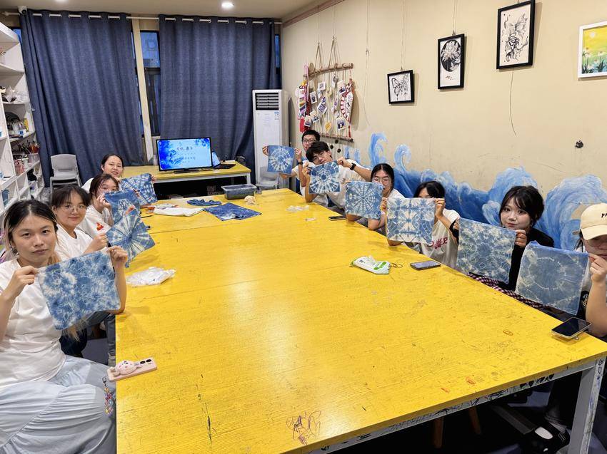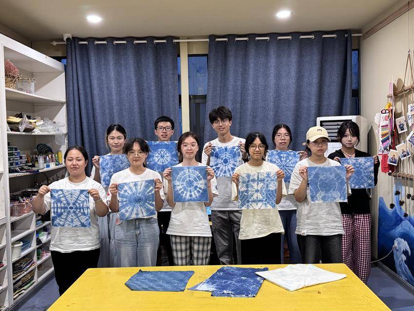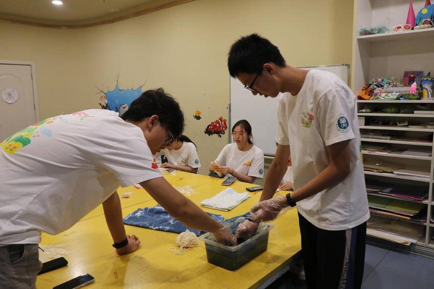 湖北日报客户端讯(通讯员徐晓莉)“大家好,欢迎来到青年夜校免费体验扎染课。作为非遗课程之一……”7月24日晚,在青年之家旗舰店蓝可杜若美学馆内,刚刚结束一天“带娃”工作、来自不同点位的10名爱心托管班志愿者围坐在长桌前,在蓝白交织的纹样中感受非遗扎染的独特魅力。 活动现场,在授课老师简短介绍后,志愿者们开始动起手来,对折、再对折、八等分、皮筋固定——看似简单的步骤,却让平时带娃风风火火的志愿者们瞬间“慢”了下来。“平时给孩子们上课很忙碌,这次扎染体验让我静下心来感受传统工艺的美,特别治愈。” 来自青少年活动中心的志愿者徐奕贞如是说。 志愿者们戴上手套,将扎好的方巾轻轻放入染色盒里,靛青瞬间吞没白布。志愿者们细心观察,看染料由黄绿悄悄晕开,继而化作深邃的蓝。“氧化是魔法,空气会让靛蓝显色,就像志愿者的工作——默默浸润,终会斑斓。”授课老师在课上这样解释道。拆线、漂洗、展开——那一刻,志愿者们惊叹声此起彼伏,看着自己亲手制作的作品,他们脸上露出欣喜的笑容。 据悉,自爱心托管班开班以来,为丰富志愿者在远安的生活,共青团远安县委面向爱心托管班志愿者开设每周一次的青年夜校免费体验课,旨在为志愿者搭建交流平台,缓解服务压力。目前已连续开展3期,此次青年夜校免费体验扎染课就是继丙烯画、飞盘课程后,共青团远安县委为丰富志愿者业余生活推出的又一文化体验活动。 下一步,共青团远安县委将持续关注青年志愿者个性化需求,定制化开展丰富多彩的实践活动,让大学生志愿者在远安期间有得有趣更有盼。