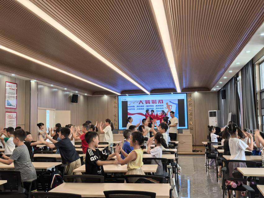 面对室外天气炎热的难题,社区志愿者创新思维,巧妙设计了这套因地制宜的“课桌健康操”。它完美适配教室环境,无需额外腾挪空间,让孩子们在课间或学习间隙就能轻松起身活动筋骨,有效缓解久坐疲劳,显著提升了身体协调性与灵活性。更为可贵的是,课桌操中巧妙融入了互动元素。当孩子们转身与邻座伙伴默契击掌,或协同完成一段配合动作时,欢声笑语自然流淌。这方寸之间的律动,不仅强健了体魄,更成为连接心灵的纽带,让友谊在每一次默契的配合与真诚的笑容中悄然滋长。