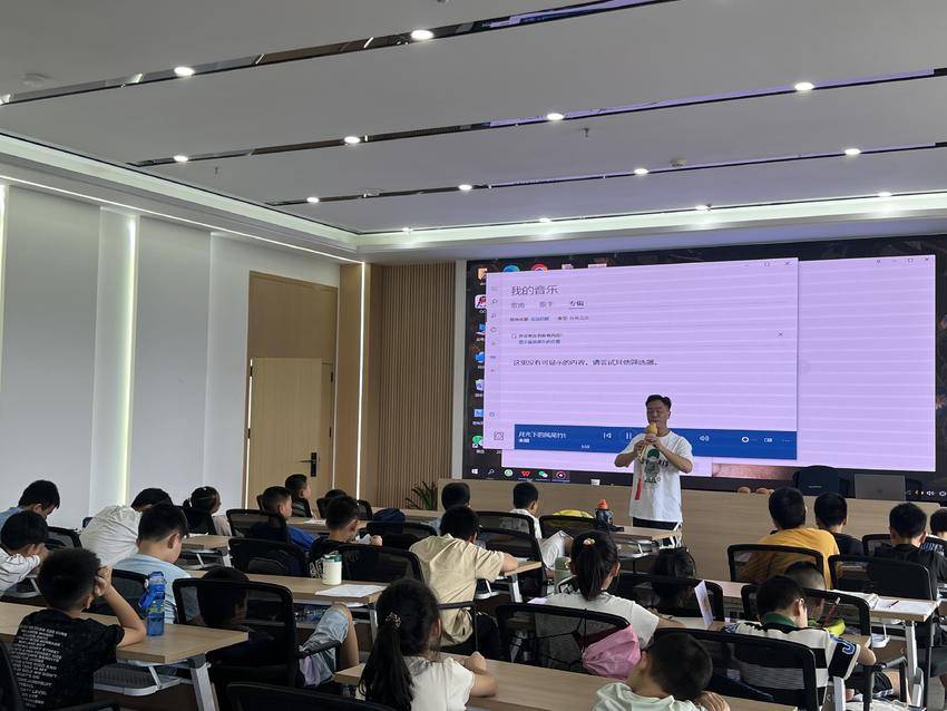 课堂上,在敖志波的耐心细致的指导下,孩子们从认识葫芦丝的基本构造开始,逐步学习持姿、指法和简单的吹奏技巧。敖志波不仅传授基本演奏技巧,更生动讲述了葫芦丝背后的文化故事和历史意义。孩子们亲手触摸葫芦丝,感受其独特的材质与精妙的音孔设计时,对这一承载着民族智慧的传统乐器的魅力有了更直观的认知。