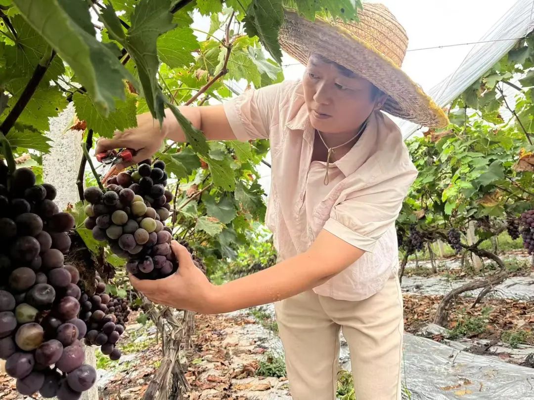 果园变乐园,农旅融合激活新体验。顺应全县农文旅融合发展大格局,李燕牵头把果园改造成“田园综合体”,规划采摘步道、设置农事体验区、开辟亲子游戏场,策划葡萄文化节、草莓嘉年华等活动,董家村成为周边市民的热门打卡地,2024年仅果旅收入就超15万元。 屏幕变窗口,双线平台打开新销路。“直播不是年轻人的专利,咱农民也能上镜卖货。”站在电商发展的风口,李燕带头学直播、练话术,在镜头前介绍董家葡萄口感味道、展示古法熏制工艺。线下乐园聚人气、线上直播拓市场,这套组合拳,不仅解了“果卖难”的愁,还让董家村的茶叶、腊肉等土特产成为“网红产品”。