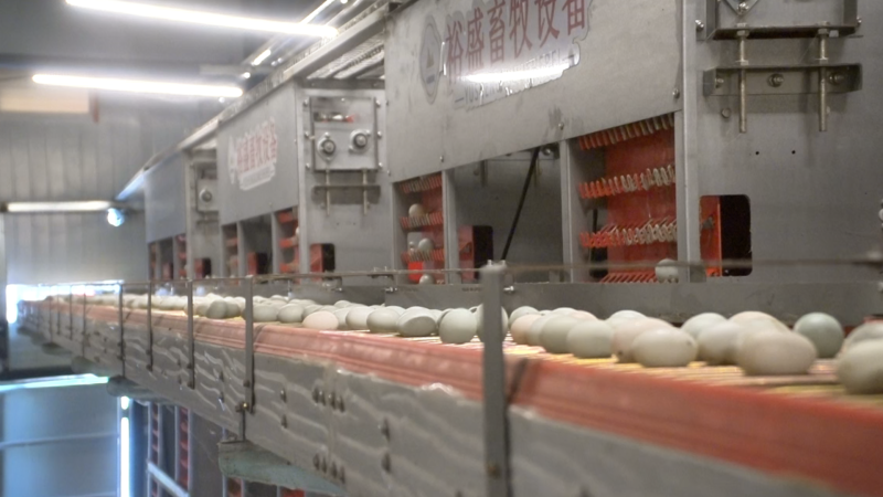 这套设备让鸭场如同有了智能管家,鸭子被照料得面面俱到。更省心的是,捡鸭蛋也无需人工操作。鸭子产下的蛋会自动滚进笼旁的凹槽,再通过流水线输送到工人面前,他们只需负责分拣就行。