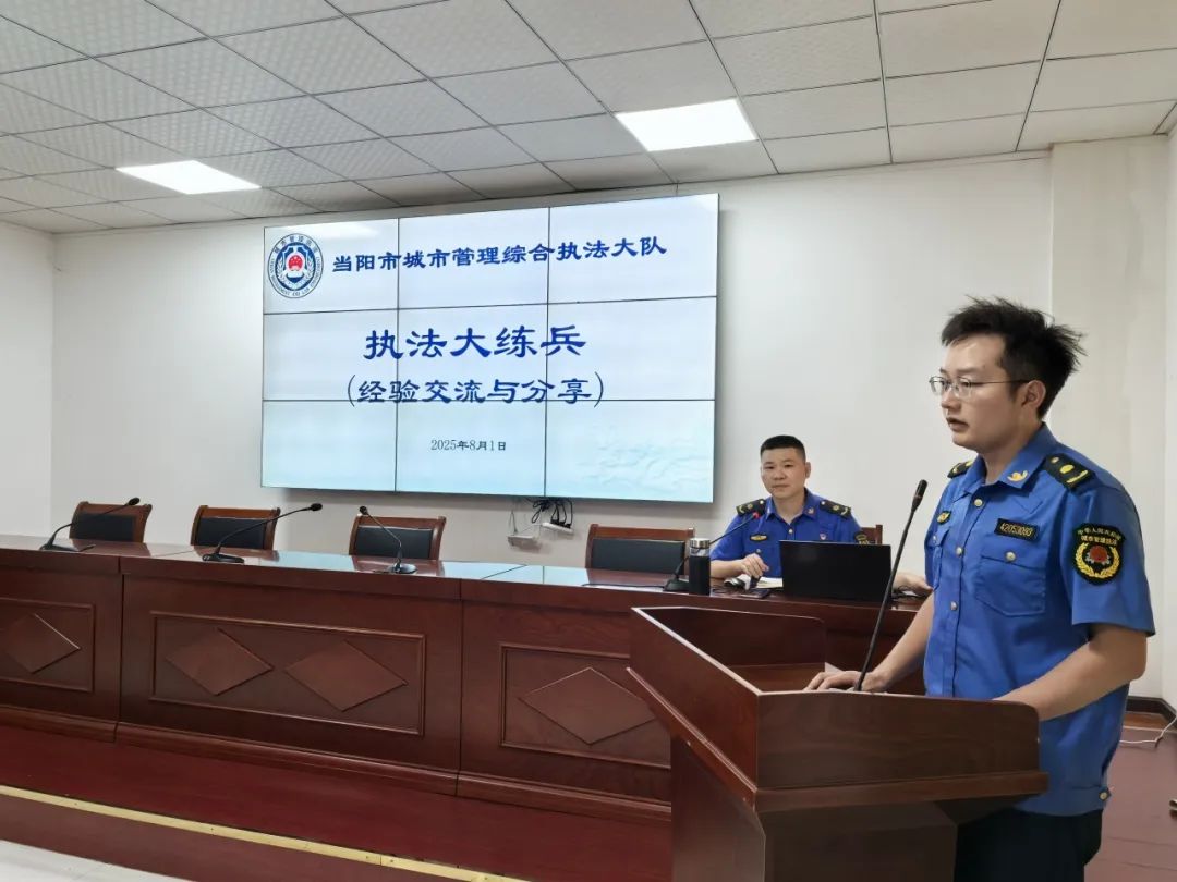 今年4月份以来,当阳市城市管理执法局以“干部素质提升年”为契机,为执法队伍“强筋健骨”,通过强化理论学习、规范执法程序、加强队伍训练等多项举措,着力打造一支政治过硬、业务精湛、作风优良的执法队伍。