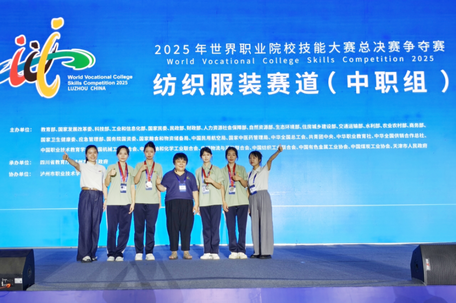 8月24日,由教育部、国家发展改革委、科技部、工业和信息化部等30余个部门主办的2025年世界职业院校技能大赛总决赛争夺赛纺织服装赛道(中职组)在四川泸州圆满落下帷幕。大赛吸引了来自全国25个省(区、市)的61支代表队、700余名精英参赛,竞争异常激烈。 当阳职教中心服装专业学生何正英、夏美惠、庄紫乐、何妍希凭借扎实的专业技能、出色的团队协作和卓越的创新思维,在本次大赛中脱颖而出,荣获银奖,实现了该赛项在世界职业院校中的历史性突破。
