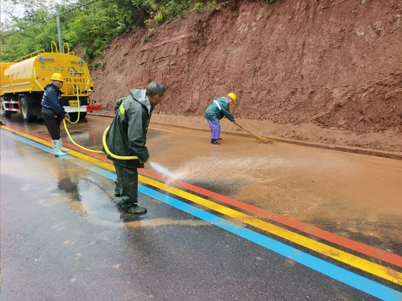 在王店镇木半路,因暴雨导致路面出现严重淤泥堆积,不仅阻碍交通,还可能对过往车辆和行人造成安全威胁。当阳市交通局工作人员迅速响应,携带工具赶赴现场,冒雨开展清理作业。大家有的合力搬抬倒伏树木,有的用铁锹铲除路面淤泥,在风雨中默契配合,争分夺秒恢复道路通行,保障乡镇交通“生命线”畅通。