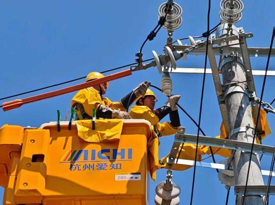 近日,国网当阳市供电公司半月供电所施工人员对10千伏凤凰山线3号台区进行带电搭火作业。附近的当阳市半月镇凤凰山柑橘产业园内,6万亩柑橘正到了果实成长的关键时期,强劲电能带动自动化喷灌设备开足马力,源源不断的水分滋养果树茁壮成长。