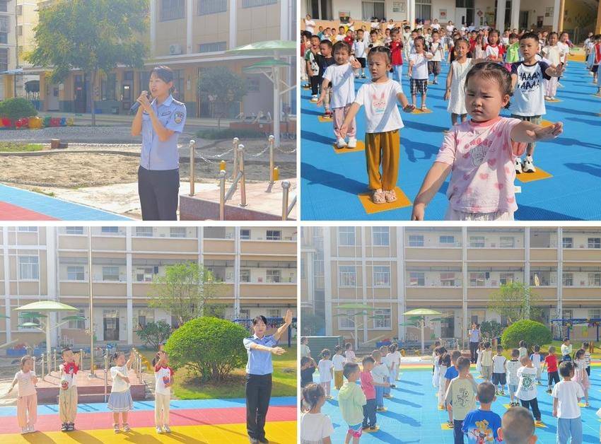 上午9 时,升旗仪式准时开始。小小护旗手们迈着稚嫩却坚定的步伐,昂首挺胸将国旗护送至旗杆下。伴随嘹亮的国歌声,五星红旗缓缓升起,全体师幼肃立行注目礼,目光追随着国旗直至顶端。仪式后,交警大队李警官受邀登场,她通过生动有趣的互动问答,搭配直观易懂的交通手势教学,将交通安全常识娓娓道来,让安全意识在孩子们心中悄然扎根。