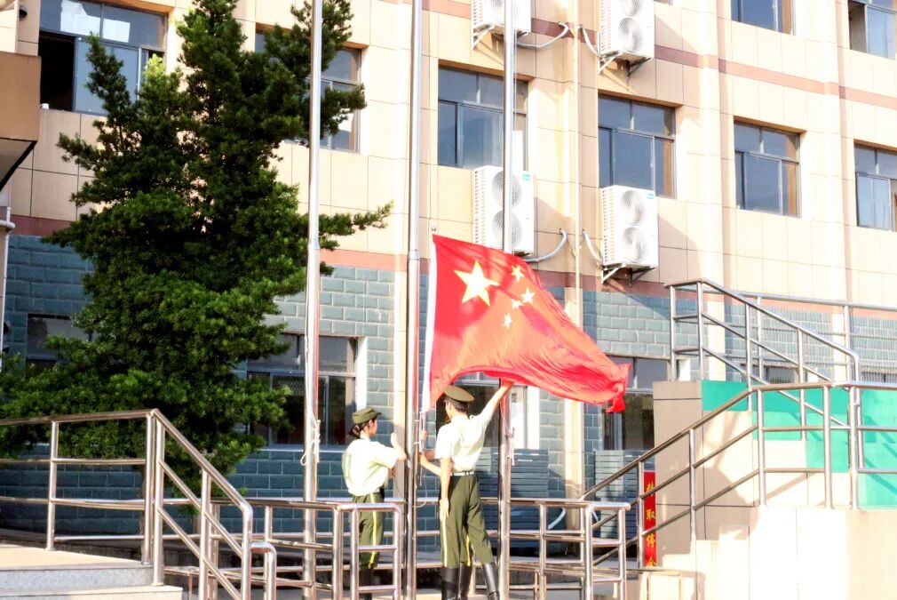 伴随着激昂的旋律,嘹亮的国歌声响彻校园,五星红旗冉冉升起。