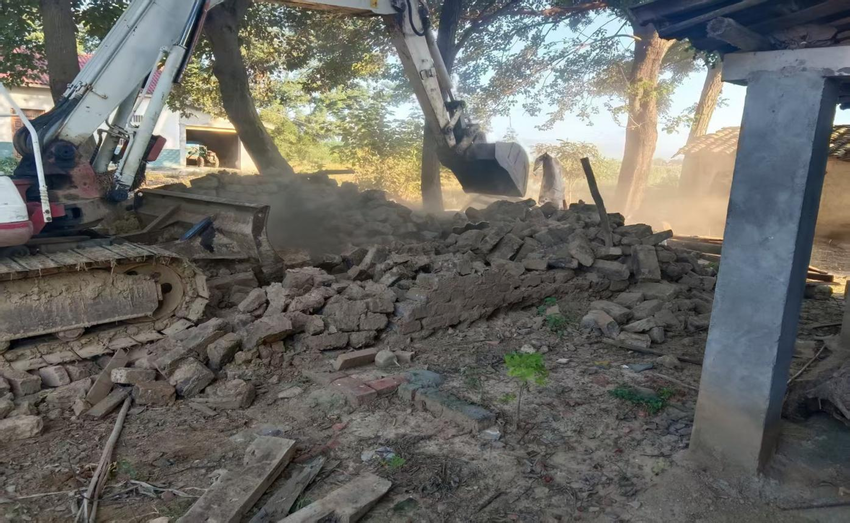 拆除时,周围五户村民也主动搭手帮忙。大家分工协作,不光拆了残垣断壁,还把周边杂草清得干干净净,围墙边的塑料袋、旧木柴也收拾得不见踪影。如今再看汪家院子,变得敞亮又清爽。路过的村民笑着说:“现在这里干净了,蚊子都少了,院子看着舒服多了!”