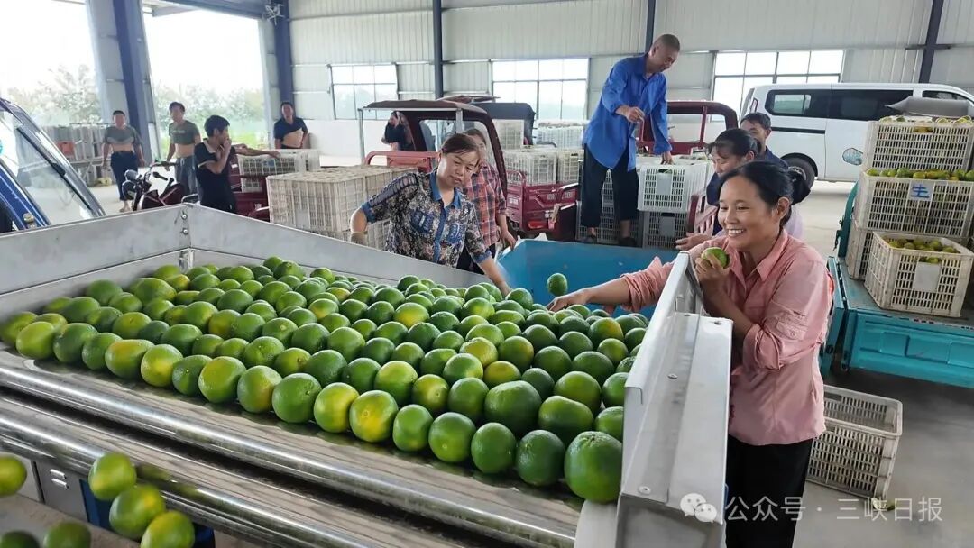 金秋时节,当阳市半月镇凤凰山柑橘示范基地里,连片的橘树郁郁葱葱,黄绿相间的蜜橘压弯了枝头。果农们穿梭在林间熟练地采摘今年首批成熟的“大芬四号”特早熟蜜橘,田间地头一派繁忙的丰收景象。 果农王进波一边采收一边高兴地说:“今年蜜橘长势特别好,尤其是镇里推广的‘大芬四号’,果形饱满、清甜多汁,非常受欢迎。我家种了10亩,预计能收6万多斤。合作社统一收购,每斤价格比去年高,能卖到1块钱。”