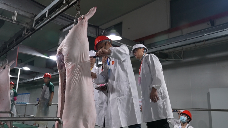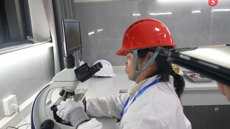 此次竞赛分实操竞技与理论考核两个环节。实操竞技环节重点考核选手生猪屠宰流水线 “六岗十六刀”同步检疫、实验室检验操作等核心技能;在理论考核环节,选手通过“湖北省动物检疫检验员职业技能竞赛考试系统”在线答题,内容涵盖《中华人民共和国动物防疫法》《生猪屠宰检疫规程》等法律法规及疫病防控专业知识,成绩由系统自动评判生成,确保公平公正。赛事还创新采用智慧排队叫号、选手操作实时可视化等机制,全方位检验选手的临场应变与综合业务能力。