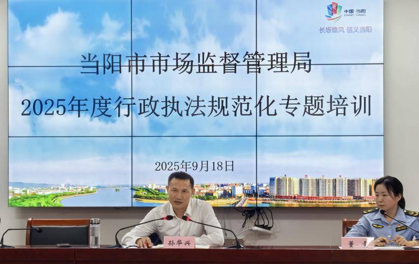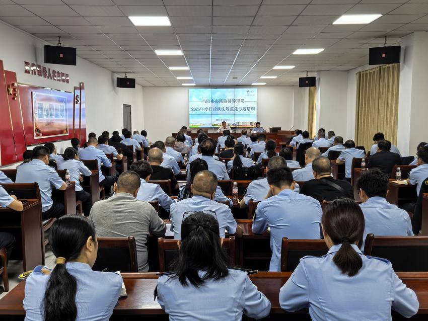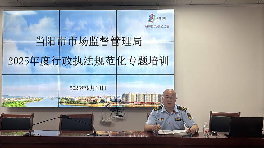 湖北日报客户端讯(通讯员 席巧缘)以学铸魂强根基,以考促行砺尖兵!9月18日,当阳市市场监督管理局开启执法规范化“升级之旅”,组织综合执法大队、法规股及基层监管所全员开展行政执法规范化专题培训与理论考试,通过“学、练、考”三位一体的实战训练,全力锻造市场监管执法“铁军”。