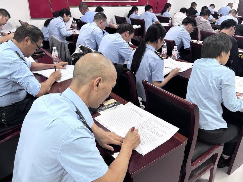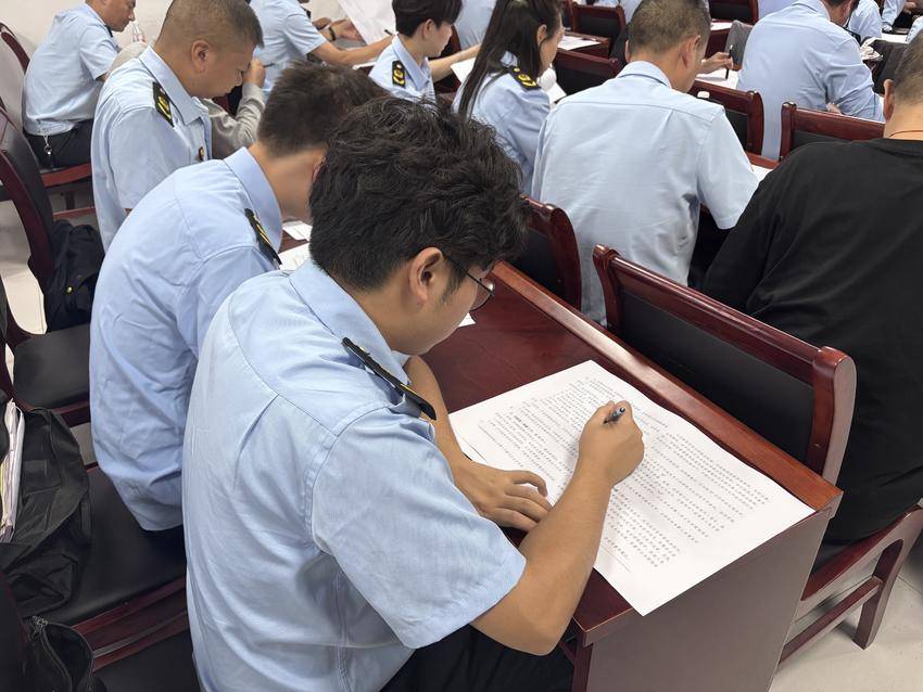 培训尾声,一场“真刀真枪”的闭卷考试全面检验学习成果。试卷聚焦《中华人民共和国行政处罚法》等“硬核”法规,选取执法流程易错点、法律适用难点“出题设卡”,直击执法痛点。考试纪律严明,采取“统一命题、集中测试”模式,以考促学,倒逼执法人员把理论知识“嚼碎吃透”,真正做到内化于心、外化于行,助力执法能力实现“从量变到质变”的飞跃。