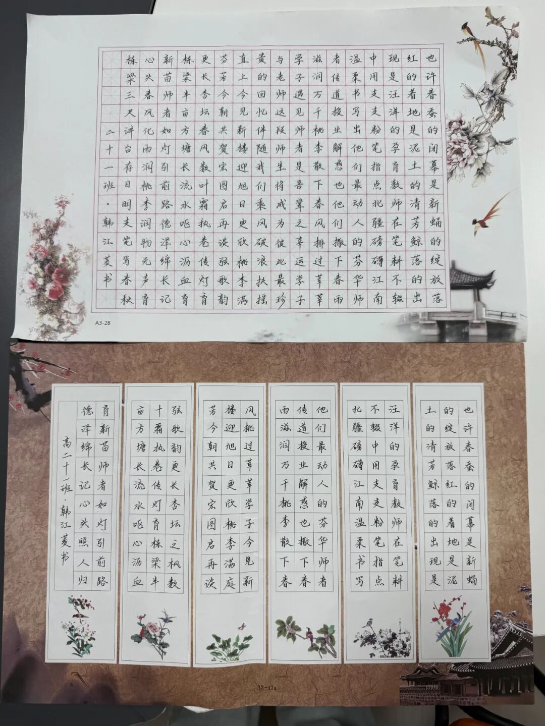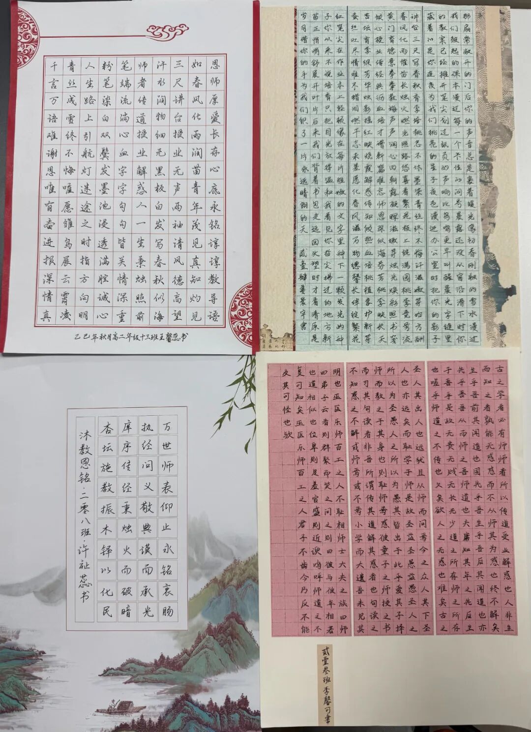 本次比赛围绕“感谢老师”与“祝福校园”两大主题展开,学生们通过楷书、行书、隶书等多种书体,创作出一幅幅情感真挚、风格各异的作品。有的以经典诗句感念师恩,有的以清新笔墨勾勒新校风貌,充分展现了当阳一中学子深厚的文化素养和积极向上的精神风貌。
