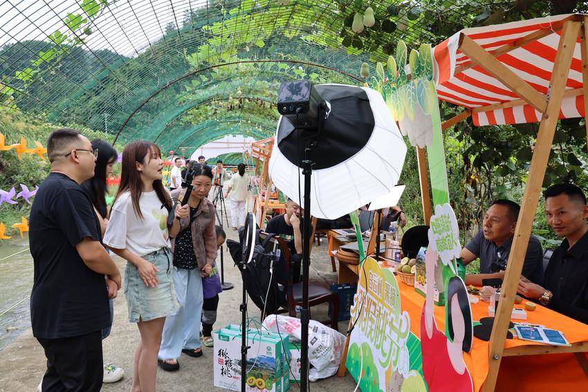 关键时刻,远安县“村播联盟”闻“讯”而动。在组织部、科技经信局等单位的统筹下,来自周边乡镇9个村的直播村干部、网红新农人、互联网企业、农特产品公司等组建起的流动直播队伍联动上阵,在丰收节采摘现场掀起了一场“线上+线下”的猕猴桃销售热潮。