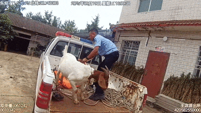 民警将羊送回农户家,车刚停稳,民警正准备将那只活泼的羊牵下车时,没想到这家伙一见到熟悉的环境,瞬间“归心似箭”,竟抢先一步猛冲下车!民警一个没抓稳,不仅没拉住它,反而被它拽着踉踉跄跄地往前跑。