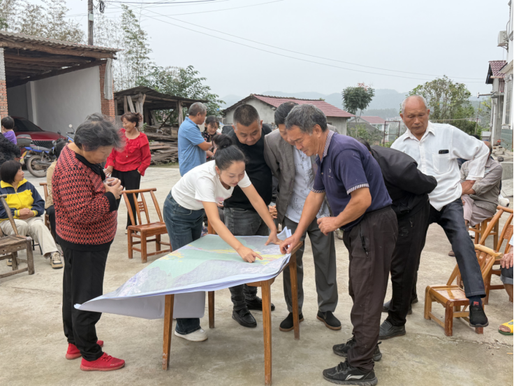 当天,村民们搬来木椅围聚在院坝中,肖七妹将大幅“村民资产示意图”铺展在桌案上,先向大家介绍清产核资的政策背景:“集体资产是全村人的‘共同家底’,把这笔账算清楚,既是保障大家权益,也是为村里发展打基础。”随后,她指着示意图上的色彩标注与文字说明,从集体土地、房屋到资源性资产,逐项讲解资产的权属、规模及核算逻辑。
