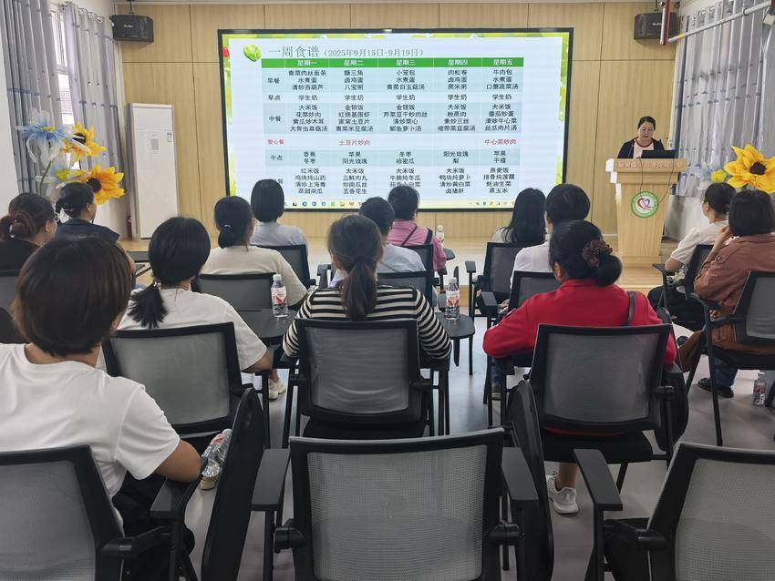幼儿的膳食与健康是家长关注的重点。会上,保健医生结合季节特点与幼儿生理需求,重点讲解了幼儿园膳食管理细则,从食材采购、营养搭配到餐食制作流程,并讲解了卫生保健工作要点,如日常消毒、健康监测等,用专业细节打消家长顾虑。随后,分管后勤工作的陈秀珍园长围绕家长配合工作展开部署,明确了护园队的职责分工与膳食监督委员会的工作机制,进一步畅通家园协作渠道。