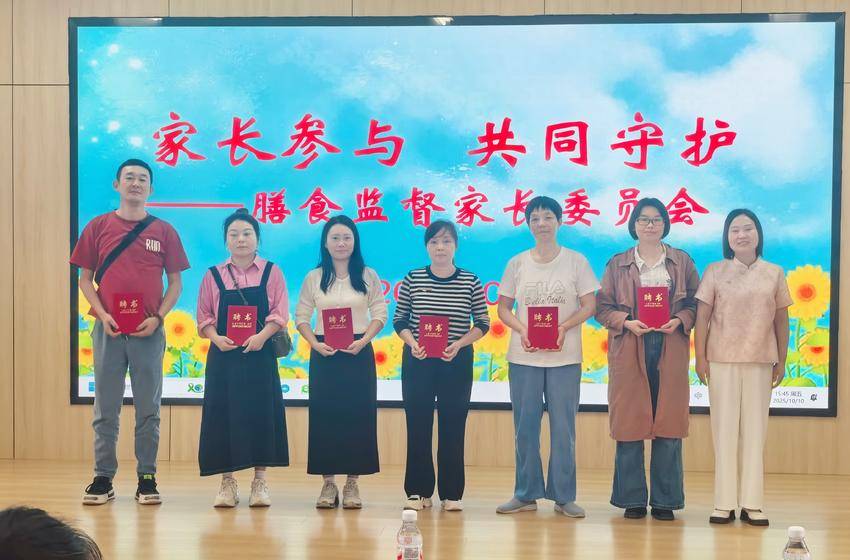 在热烈的氛围中,张园长为17位家长委员会成员颁发了聘书,这份聘书不仅是荣誉,更象征着家园携手的责任与信任。会议结束后,家长委员会成员在陈园长的引导下参观了园所食堂,实地查看食材储存间、烹饪操作区等场地,直观感受食堂的卫生管理与安全保障;随后,家长们参与幼儿陪餐环节,亲身体验餐食口感与营养搭配,餐后认真填写调查问卷与陪餐记录,为幼儿园膳食工作提出宝贵建议。