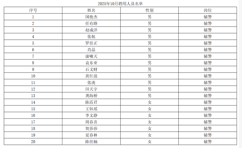 [当阳] 2025年当阳市公安局警务辅助人员拟聘人员公示 |