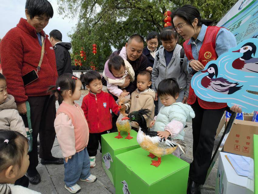 活动中,工作人员利用水生植物、鱼类和鸟类等湿地生态模型,耐心引导小朋友们近距离观察和辨认。孩子们围在模型旁,睁大了好奇的眼睛,在志愿者的指导下,争先恐后地指出自己认识的生物。这种直观、互动的教学模式,极大地激发了孩子们探索自然奥秘的兴趣。