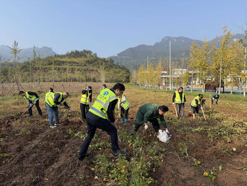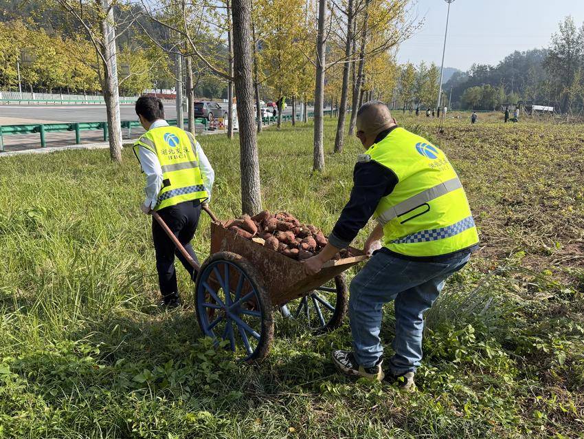 湖北日报客户端讯(通讯员吝昀)金秋时节,宜昌运营公司远安收费站旁的番薯地里,铁锹翻动泥土的声响与欢声笑语交织。“你看这番薯,沉甸甸的,攥在手里都觉得踏实!”宜昌运营公司志愿者小张刚挖出一垄番薯,便举着果实朝身旁的远安县林业局工作人员笑着说道,“当初谁能想到,这片荒坡能长出这么好的庄稼!”