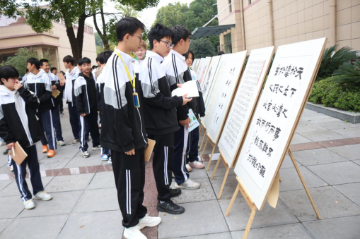 活动最后,为推动校园法治教育从“单向灌输”向“互动体验”转变,当阳市司法局在校园内设置一处“流动的法治展览区”,40幅以《中华人民共和国民法典》《中华人民共和国未成年人保护法》为核心内容的书画作品沿着主干道依次陈列,吸引同学们纷纷驻足观看讨论,在潜移默化中接受法治文化的熏陶。