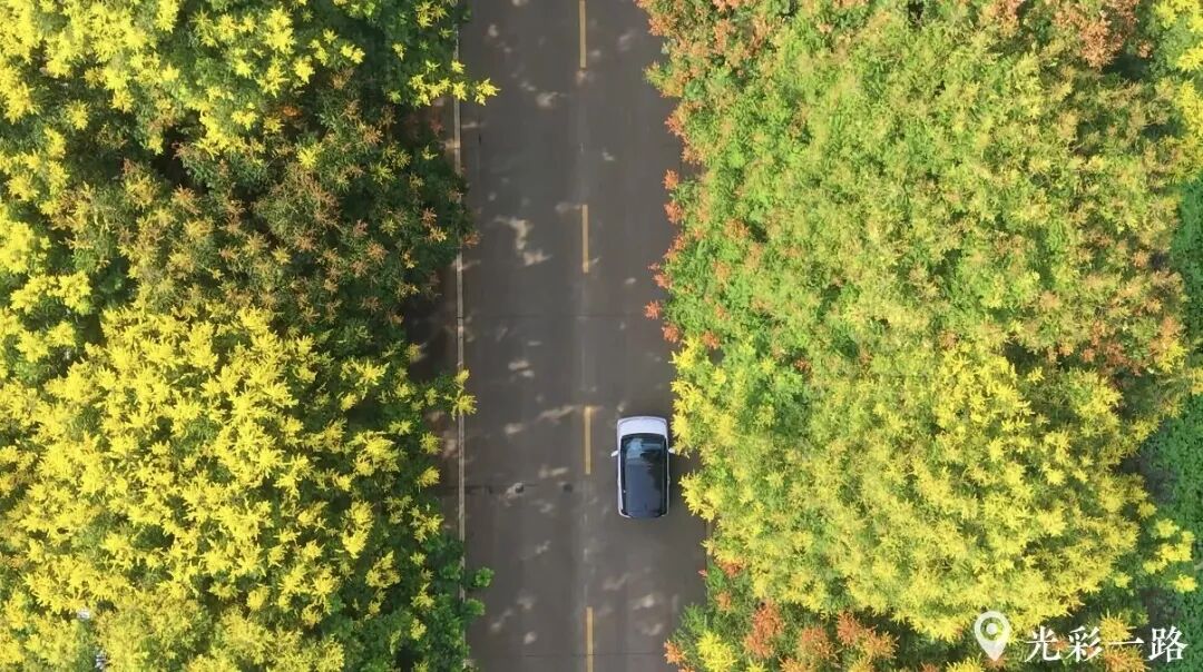 初冬的当阳,街头依旧花香萦绕。 当阳桥头,玫红的三角梅开得热烈;坝陵桥边,粉色的长春花摇曳生姿;熊家山路上月季层层叠叠,绚烂如织;玉阳路旁的栾树,把整条街染成一片金色的海洋。