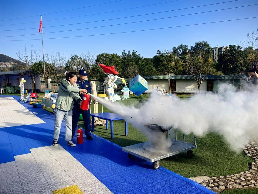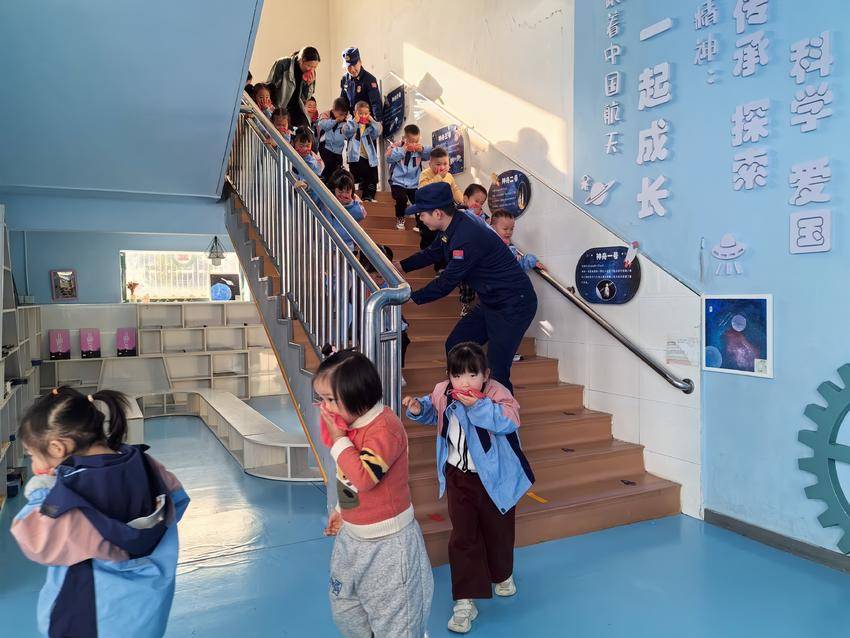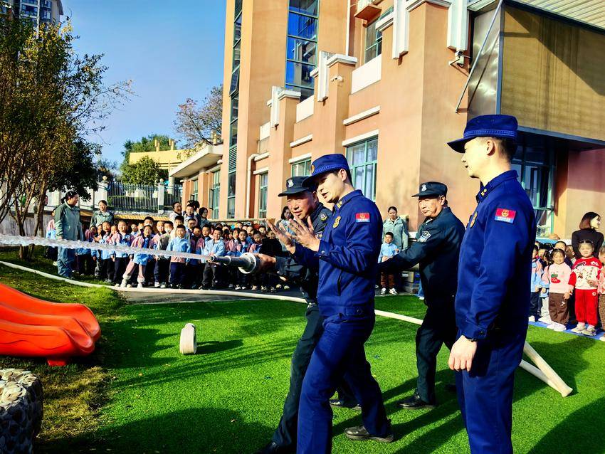 [远安] 远安航天幼儿园消防实战暨消防员入园安全课堂活动——消防演练练逃生,蓝焰卫士护童行 |