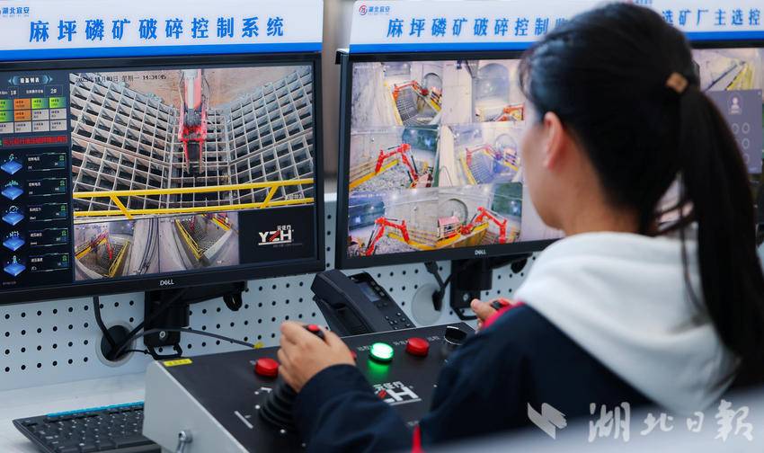 湖北宜安联合实业有限责任公司员工 王靖:我们公司智能化程度很高,这个就是仿照游戏手柄设计的。通过我们现场操作,来控制井下的液压破碎锤进行破碎打击,把矿打到溜井里面。我的工作很简单,就跟打游戏一样!