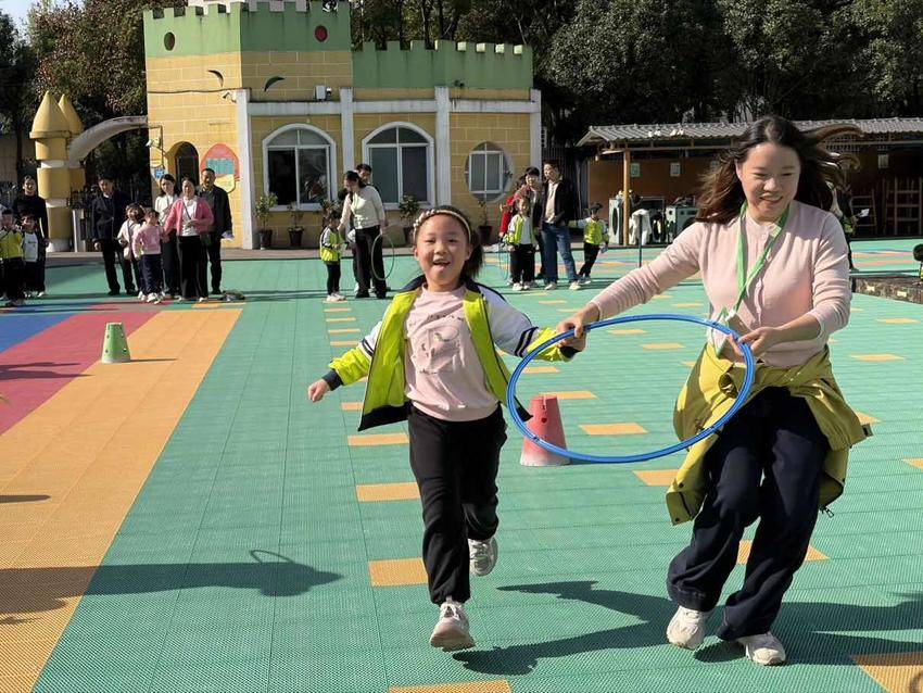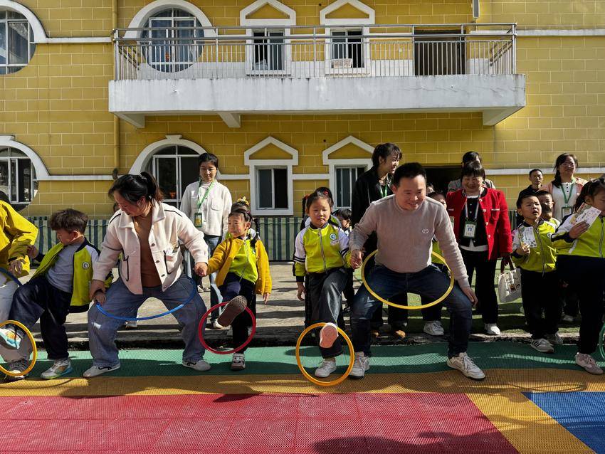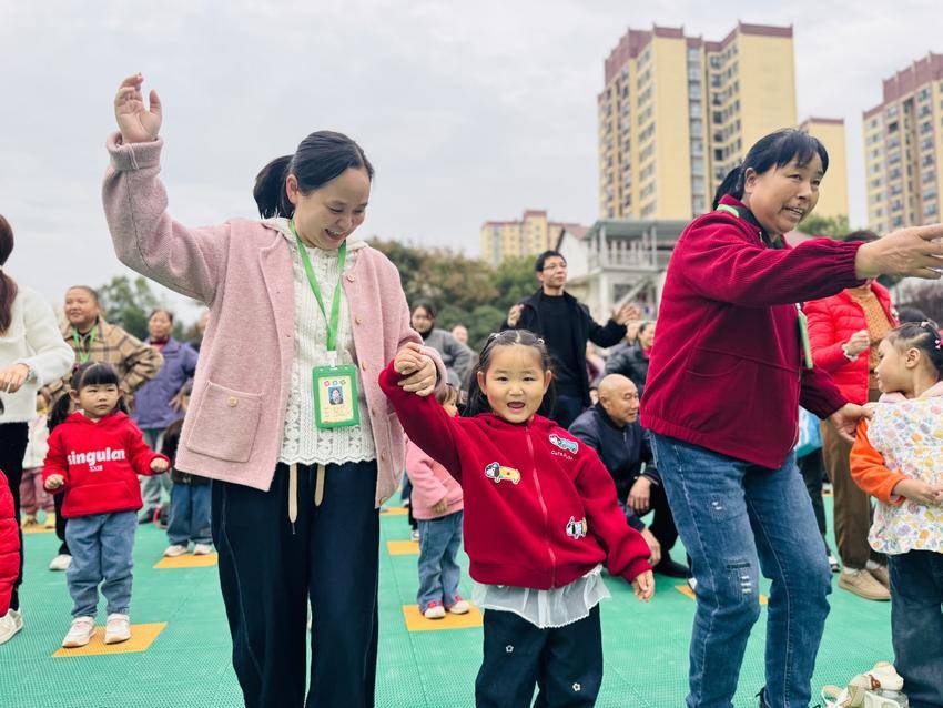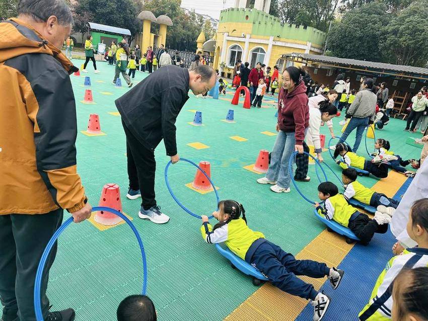 湖北日报客户端讯(通讯员 张瑜)初冬暖阳,惠风和畅,为让幼儿在运动中强健体魄、在亲子互动中凝聚情感,同时搭建家园共育的温馨桥梁,11月12日上午,远安县鸣凤镇北门村幼儿园成功开展了“‘童’享运动,‘家’倍精彩”亲子运动会,操场上处处洋溢着暖意与活力,现场热闹非凡。孩子们攥着专属游戏卡蹦蹦跳跳,欢声笑语中满是对运动的期待与亲情的暖意。 活动以庄重又童趣的开幕式拉开帷幕。伴随着《运动员进行曲》,国旗队率先入场,随后各班级依次列方队入场,小小运动员们昂首挺胸,大声喊着班级专属口号,声音洪亮,队伍整齐,赢得阵阵掌声。主持人童趣开场后,园长付梦雪登台致辞,重申“以运动促成长、以亲子聚温情”的活动目的;家长代表与幼儿代表先后发言,分别表达了陪伴孩子参与运动的期待和与家长共赴运动之约的喜悦。最后,全体师幼及家长共跳律动热身操,扭腰、拍手、转圈间,亲子默契尽显,为后续活动筑牢情感基础。