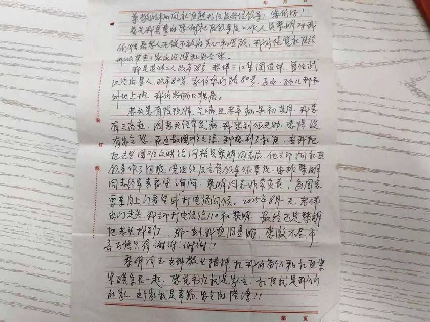湖北日报客户端讯(通讯员陈小敏)近日,鸣凤镇栖凤社区收到了一封来自辖区老人董奶奶的感谢信,不久前,董奶奶79岁的老伴不慎走失,正是在网格员的紧急联动和全力搜寻下,老人才得以安全回家。
