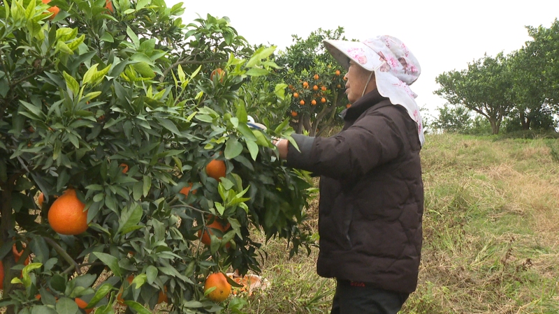 在位于王店镇泉河村的柑橘精品果园里,黄澄澄的爱媛果冻橙挂满枝头,果农们正趁着晴好天气将成熟的果实采摘、装筐。据了解,今年全村柑橘种植面积约为4500亩。近年来新引进的爱媛、金秋砂糖橘等品种表现亮眼,成了带动农户增收的“金果子”。泉河村党总支书记艾贵庭介绍道:“我们的爱媛是最近几年才引进的品种,品相一般的卖三元钱一斤,如果亩产按五千斤算,每亩卖一万五千元是有把握的。金秋砂糖橘也是最近几年才到我们当地,一亩田可产三千斤到四千斤,每斤单价三元左右,一亩田可以卖一万到两万余元钱。” 泉河村种植柑橘历史悠久,但过去因品种传统,市场竞争力不强,果农收益有限。近年来,该村积极引进金秋砂糖橘、爱媛28等优良品种。同时围绕“果实优、园相美、高效益”的目标定位,开展玛瑙河流域泉河柑橘精品果园建设,推动柑橘品种结构调整,从而提升柑橘品质,助力果农增收,农户年人均收入增加达1.2万元。艾贵庭说:“我们做精品果园,主要是搞示范,引进一些新品种,也是为了适应市场需求,高端市场需要高品质的水果,尤其像金秋砂糖橘、爱媛、脆蜜金柑这些品种,是适应高品质消费的,市场占有率高,消费价格比较高,带动农民的收入增加。”
