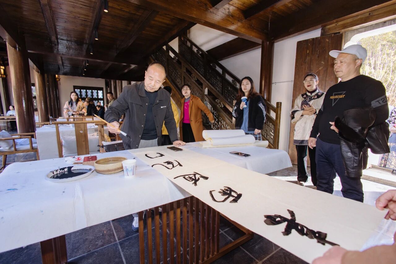 活动现场艺术形式丰富多彩。在袅袅琴音中,县美术家协会与书法家协会的艺术家们即兴创作,以《诗经》名句和本地山水为题材挥毫泼墨。同时,宜昌市茶艺协会带来的茶席展示与冲泡表演,让茶香与琴韵、墨香交织,共同勾勒出一幅生动的雅集画卷。