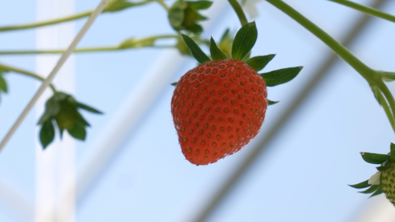 “今年的草莓我们种了四个品种,其中就有粉玉、香野和越秀,还有越雪妃。从今年12月1日开始可以采摘到明年6月1日以前。空中草莓的优势就是比陆地上的草莓,产量能提高到一倍,口感更丰富。”产业园综合科负责人王雪红介绍。