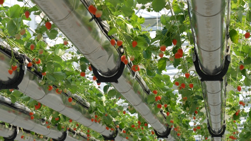 这份冬日“莓”好的背后,是科技的硬核支撑。据了解,空中草莓园采用物联网智能气候控制、悬挂上下移动式栽培床、数控化精准滴灌施肥技术,施肥系统24小时进行水肥监测,自动调配营养液定点定量精准滴灌至草莓植株。科技的加持,既保留了浓郁的草莓本味,而且还免洗可食,深受消费者青睐。