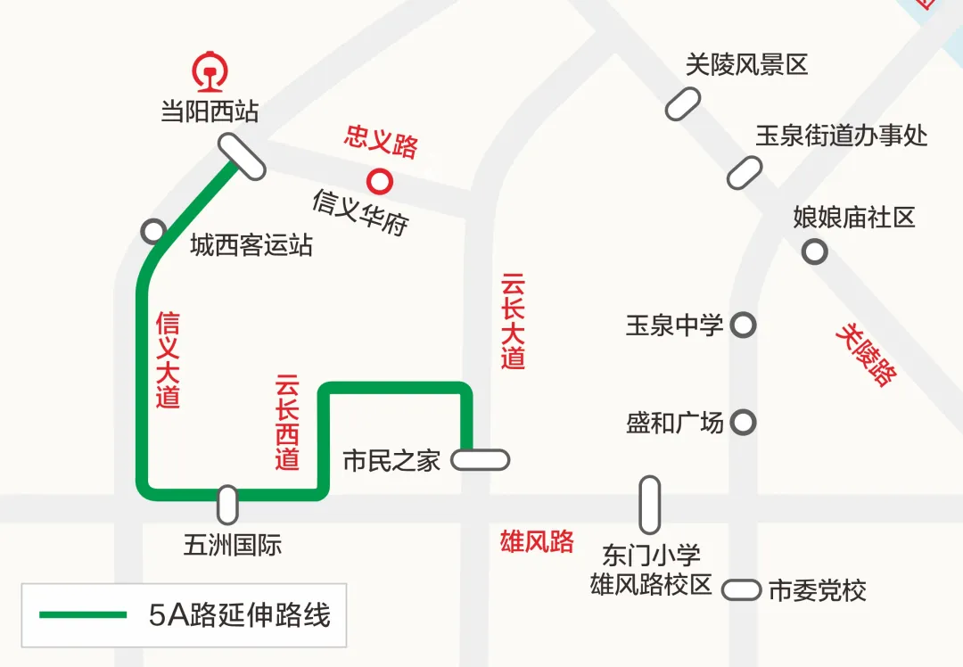 5A将原始发站市民之家延伸至当阳西站,经停市民之家—五洲国际—当阳西站