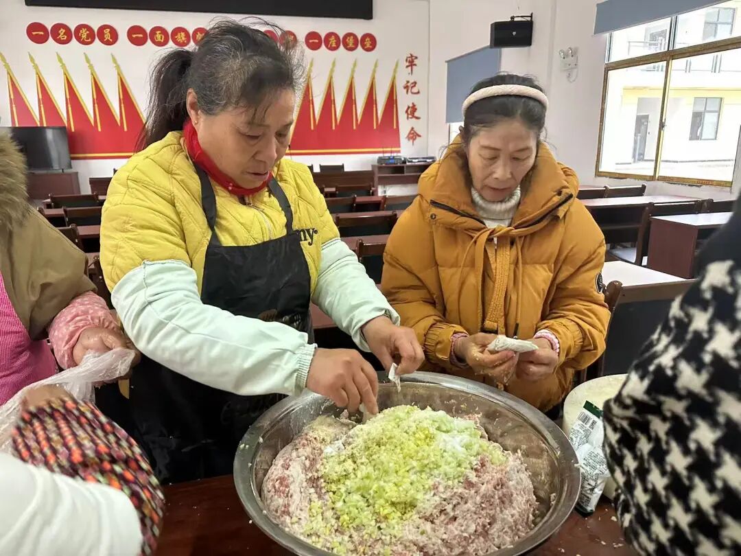 恰逢冬至来临,林河村村委会里热闹非凡,一场暖意融融的包饺子活动正在上演。村妇联主席和村民们热情邀约,巾帼村播联盟的成员们也加入了包饺子的队伍。和面、擀皮、包饺子、蒸煮……大家分工协作,欢声笑语回荡在院落里。