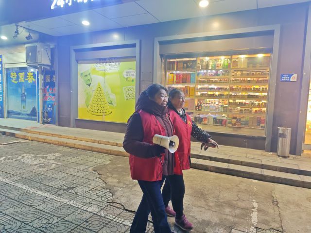 湖北日报客户端讯(通讯员 宋亚玲)每当夜幕降临,当阳市坝陵街道锦屏山社区街巷内总有一抹亮眼的“红色”在静静流动——那是身着红马甲、手持大喇叭的居民志愿者。他们每晚七点半准时出发,穿梭于楼栋、商铺与街巷之间,成为社区夜晚最温暖而安心的风景。